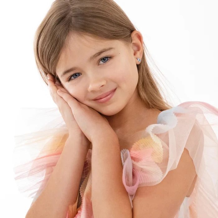 An In Season Jewelry favorite, these adorable little turtle earrings are sure to bring a smile to her face. Featuring beautiful round cubic zirconia stones and set entirely in 925 sterling silver, they are naturally hypoallergenic and safe for sensitive skin. They feature threaded posts and a safety back system to ensure your child's earrings stay comfortably in place. These turtle earrings make a perfect gift for any occasion or just for a fun day at the beach. Beautiful gift box included for easy giving!