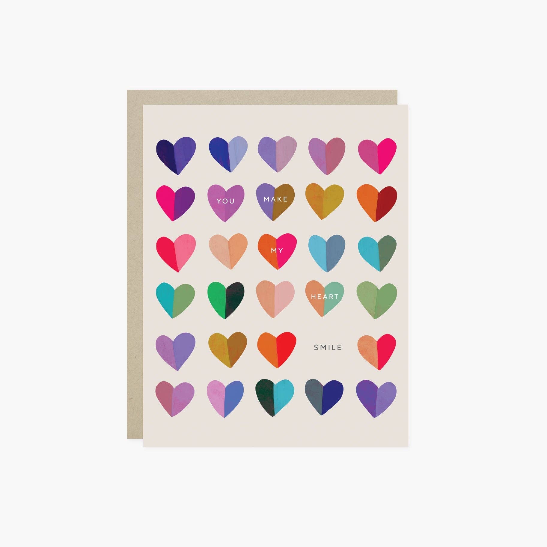 Bright, colorful, and full of love—just like them! This modern Valentine’s Day card features a cheerful grid of painterly hearts and the sweet message: “You make my heart smile.” Perfect for Valentine’s Day, anniversaries, or any moment that calls for a little extra joy, this love-filled greeting card is sure to make someone’s day. Whether you’re searching for Valentine’s cards, greeting cards, or a heartfelt way to say ‘I love you,’ this design is a bright and beautiful choice!