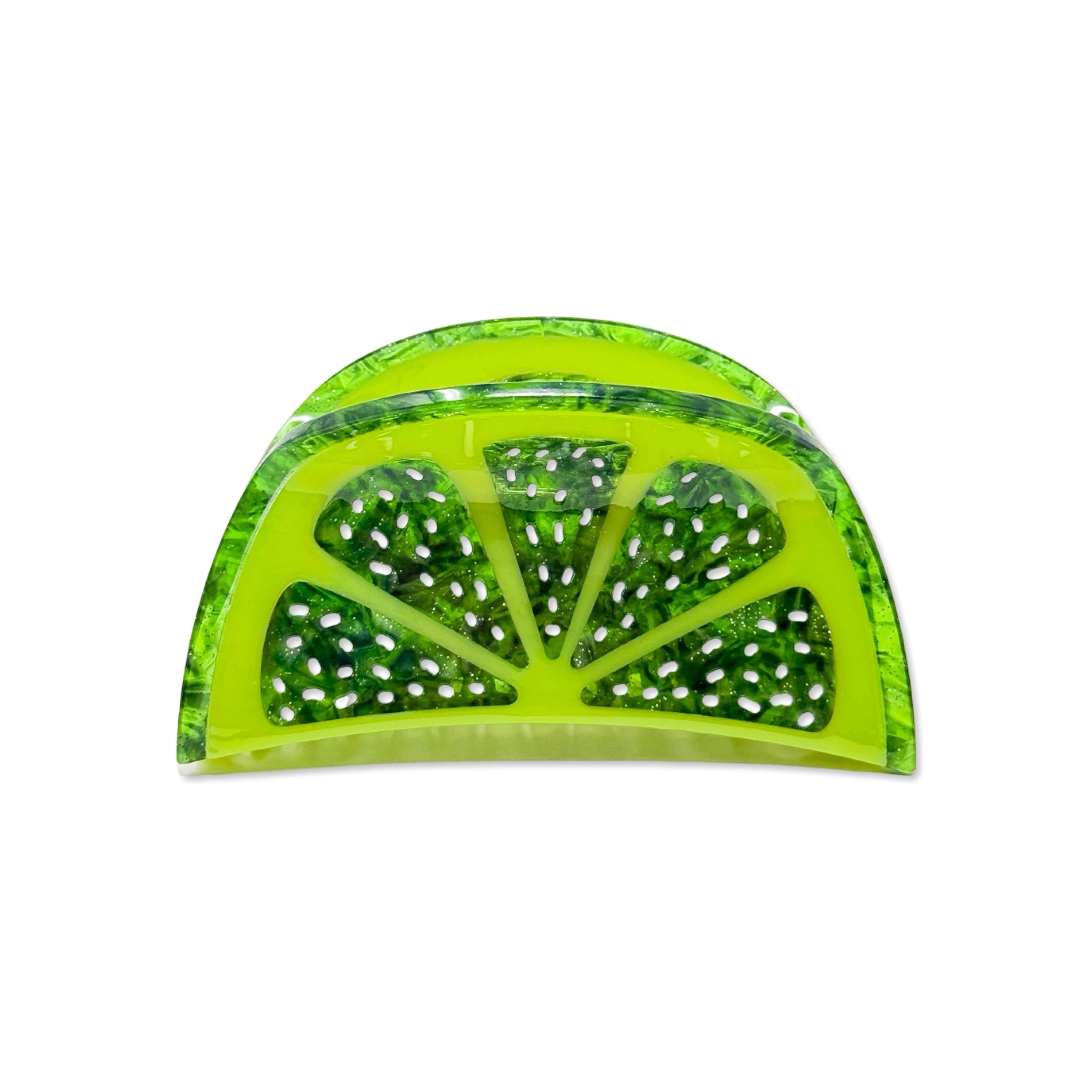 This colorful & juicy big lime hair claw is made from cellulose acetate, a plant-based alternative to plastic.